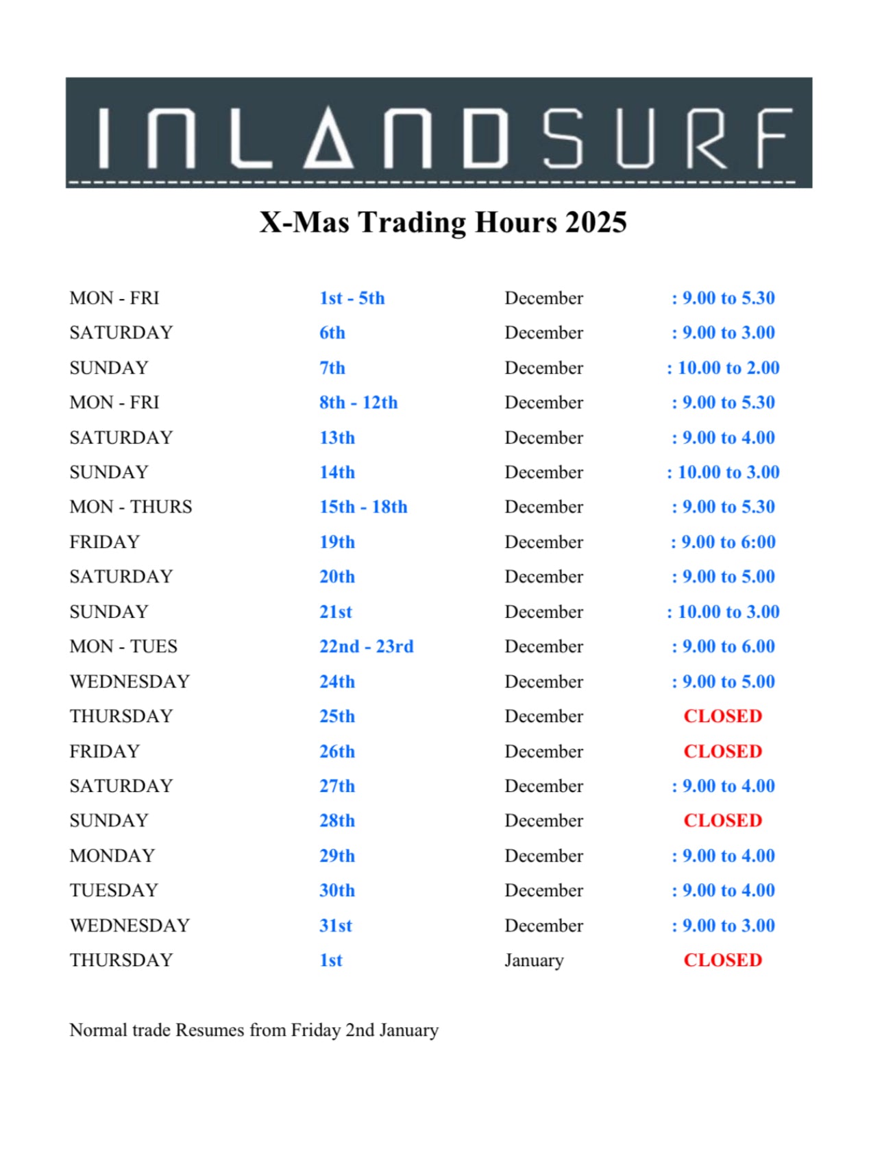 Christmas Trading Hours